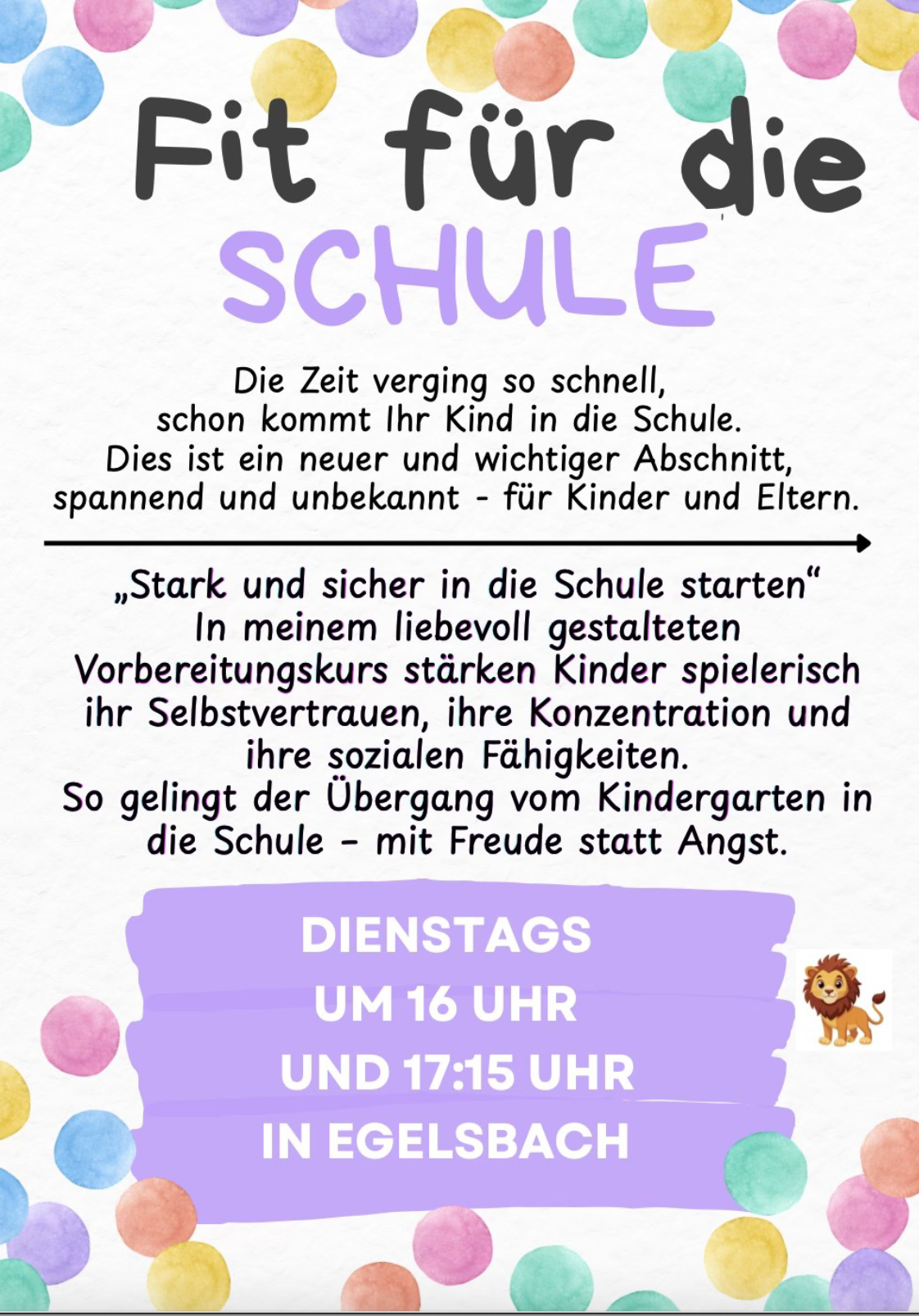 Genaue Termine, Kennenlerngespräche und Schnupperstunden vereinbare ich gerne mit Ihnen telefonisch.